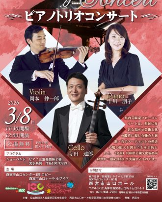 | <要整理券>陸上自衛隊第3音楽隊演奏会【2025年12月14日開催】 <要整理券>陸上自衛隊第3音楽隊演奏会【2025年12月14日開催】 12月 14 終日 ![]() 【応募受付終了しました。たくさんのご応募誠にありがとうございました】 陸上自衛隊第3音楽隊演奏会 [PDF:2MB] 近畿2府4県を中心に演奏活動している陸上自衛隊第3音楽隊の皆様をお迎えして 演奏会を開催いたします! ※この公演は往復はがきによる事前申込みが必要です。 開催:2025年12月14日(日) ※要事前申込(10月31日(金)必着)申込多数の場合は抽選。 時間:13:30開場 14:00開演 会場:西宮市山口ホール(西宮市山口町下山口4-1-8山口センター内1階) 入場料:無料(全席指定・要整理券) . ○申込方法 往復はがきに以下をご記入のうえ、10月31日(金)(必着)までに下記宛先へお送りください。 ■往信用ハガキ 宛名面 〒651-1412 西宮市山口町下山口4-1-8山口センター内 「西宮市山口ホール」宛 裏面 申込者様の氏名 住所 電話番号 ※2名で申込む場合、全員の氏名・住所・電話番号を記入してください。 ■返信用ハガキ 宛名面 申込者様の郵便番号・住所・氏名 裏面 未記入 ■宛先 〒651-1412 西宮市山口町下山口4-1-8 西宮市山口ホール 宛 【応募締切日 令和7年10月31日(金) ※締切日必着】 注意事項 往復はがきによる事前申し込みが必要です。 往復はがき以外の応募や重複申込みは無効とさせていただきます。 同時申込みは2名まで(団体受付不可) 当日は当選はがきをお持ちください。[...] | 【カルチャー】春風コーラス 9:00 AM 【カルチャー】春風コーラス 12月 16 @ 9:00 AM – 12:00 PM ![]() 【カルチャー】春風コーラス 歌が大好きの皆さま!明るく楽しく懐かしい童謡や ラジオ歌謡等を共に歌いませんか? [PDF:6MB] 時間:10:00~11:30 会場:西宮市山口ホール ホワイエ[展示室](西宮市山口町下山口4-1-8山口センター内1階) ■お問い合わせ 丸山 TEL 090-6064-9344 <主催>春風コーラス 【カルチャー】バランスボールで体幹ストレッチ 6:00 PM 【カルチャー】バランスボールで体幹ストレッチ 12月 16 @ 6:00 PM – 10:00 PM ![]() 【カルチャー】バランスボールで体幹ストレッチ 「少人数制で個別指導」 ”新感覚のストレッチ” [PDF:5MB] 時間:20:00~21:30 会場:西宮市山口ホール ホワイエ[展示室](西宮市山口町下山口4-1-8山口センター内1階) <主催>リフレッシュ | 【カルチャー】ジャズダンスの練習 6:00 PM 【カルチャー】ジャズダンスの練習 12月 17 @ 6:00 PM – 10:00 PM 【カルチャー】ジャズダンスの練習 会場:西宮市山口ホール ホワイエ[展示室](西宮市山口町下山口4-1-8山口センター内1階) 時間:18:00~19:30 <主催>ラブ・ステップ | <一般公開イベント>山口落語道場 1:00 PM <一般公開イベント>山口落語道場 12月 18 @ 1:00 PM – 5:00 PM 山口落語道場 会場:西宮市山口ホール ホワイエ[展示室](西宮市山口町下山口4-1-8山口センター内1階) 時間:14:00~16:00 <主催>山口落語道場 | |||